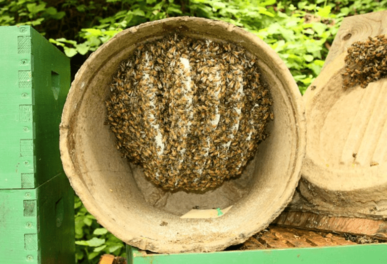 Пчелы закладывают маточники, разведка везде летает и подыскивает подходящие гнездо, после того как найдут, оставляют охрану, которая охраняет и подготавливает новое жилище. После, когда подходит время, рой вылетает из гнезда и где-нибудь прививается по близости. Позже по команде рой снимается и летит. Конечно, это нужно видеть. Удивительное зрелище.