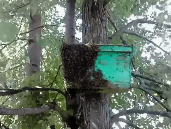 А так, когда в поймаешь рой, оставляешь его сидеть в темном месте до вечера, а вечером пересаживаешь в пустой улей, и смешно смотреть на этих бравых парней, пыл у них пропал и они сидят такие несчастные. Но через день два, все у них встанет на свои места. А в сентябре их уже ждет другая беда, если все в гнезде хорошо, то пчелы изгоняют трутней из гнезд. И им уже тогда точно не позавидуешь. Но роение это еще возможность, пчеловоду бесплатно приобрести себе пчелиную семью, для этого и ставят ловушки в лесу, где-нибудь на дереве высотой от 3 метров. Если денег на покупку пчел нет, а пчел очень хочется завести, то воспользуетесь этим случаем обязательно, просто наделайте деревянных ловушек на 5 – 8 рамок и развесьте их в лесу.
